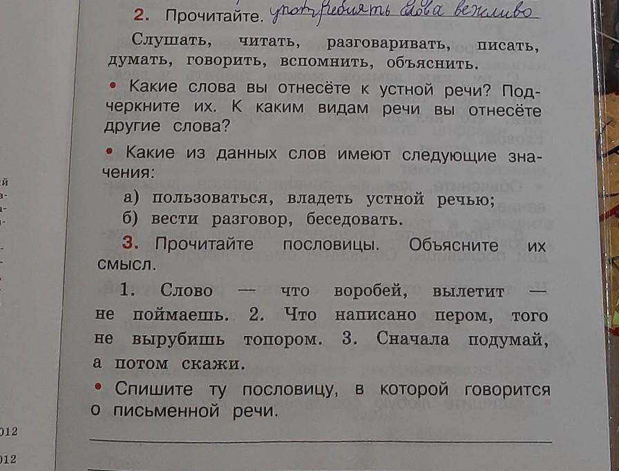 1. Относятся к устной речи: слушать, разговаривать, говорить, объяснить.