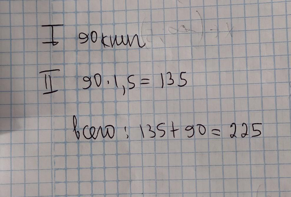 в бибеотеке на одной полке 90 книг, а на другой полке в 1,5 раза больше. Сколько книг на двух полках?
