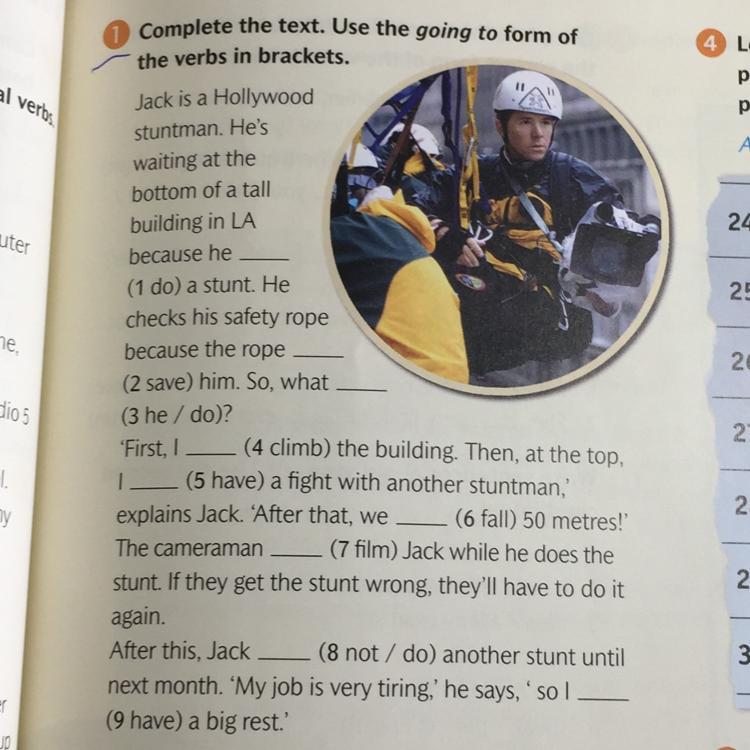 'First,I am going to climb the building.Then,at the top,I am going to have a fight with another stuntman,'explains Jack.'After that,we are going to fall 50 metres!'The cameramen is going to film Jack while he does the stunt.If they get the stunt wrong,they'll have to do it again.