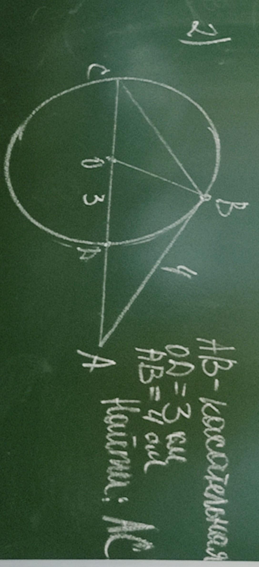 2) AO^2 = AB^2 + OB^2 = 4^2 + 3^2 = 16 + 9 = 25 => AO = 5 (см).