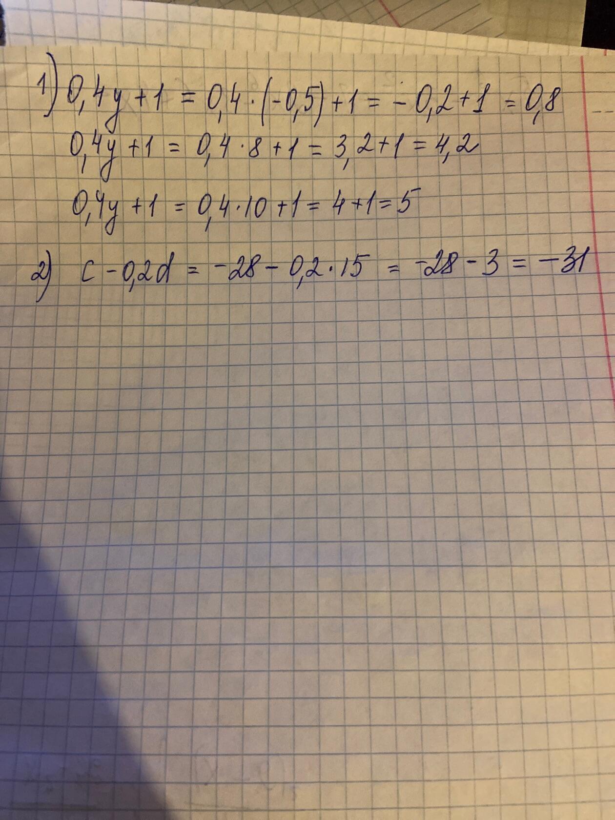 1) 0,4y + 1 при у = -0,5; 8; 10;