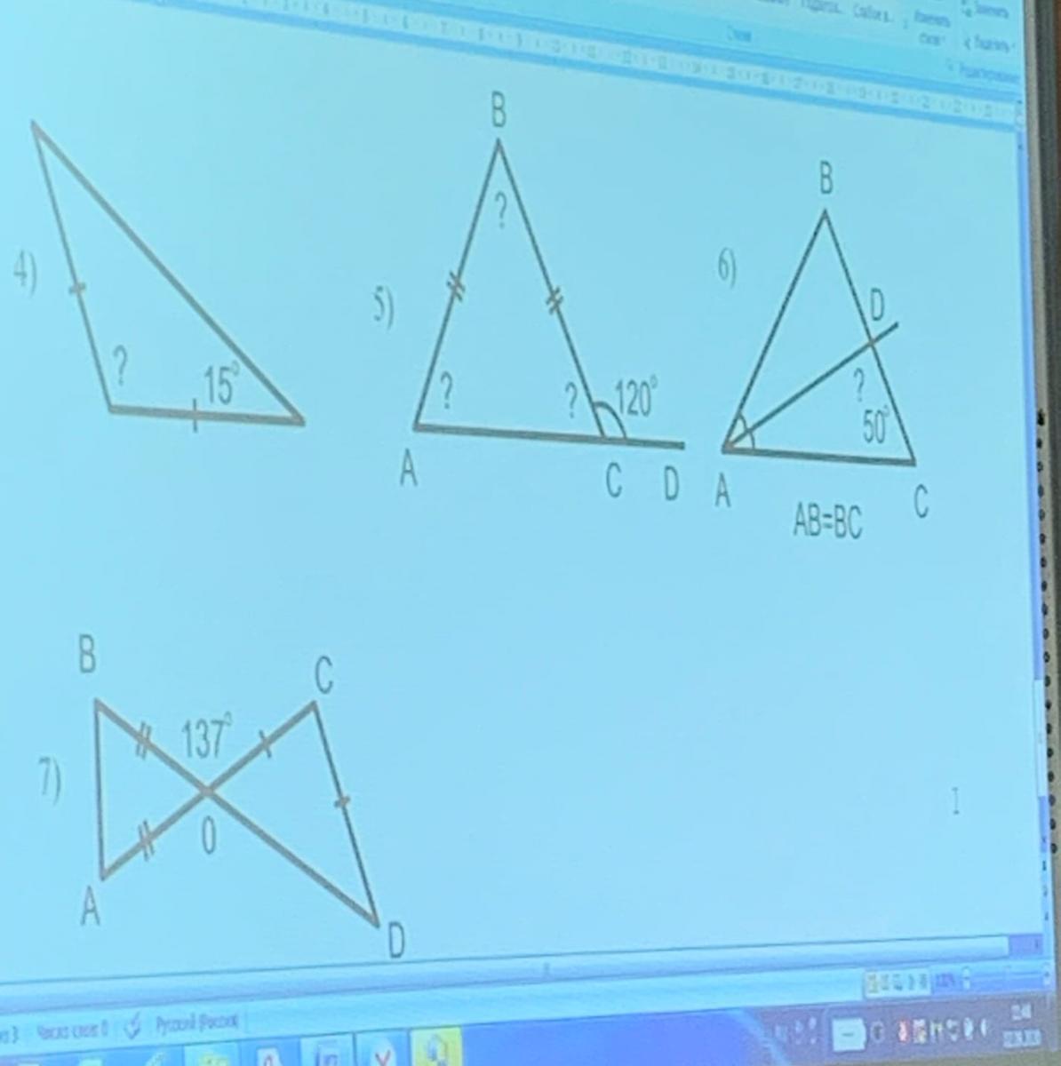 4) если две стороны у треугольника равны, то треугольник равнобедренный, этоо означает, что углы у него равны 15°. Т.к. сумма углов в треугольнике равна 180°, то 180-15-15=150