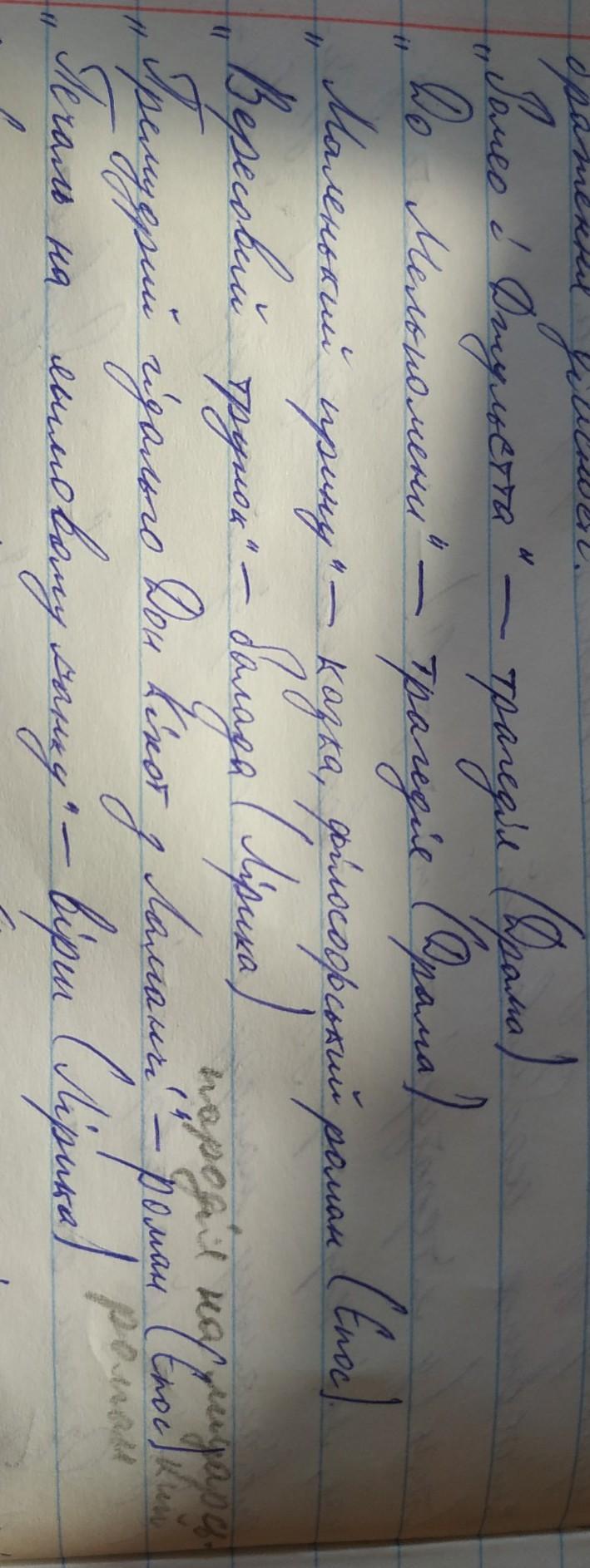 Розкрийте поняття «літературний жанр». Визначте жанри творів: «Ромео і Джульєтта», «До Мельпомени», «Маленький принц», «Вересовий