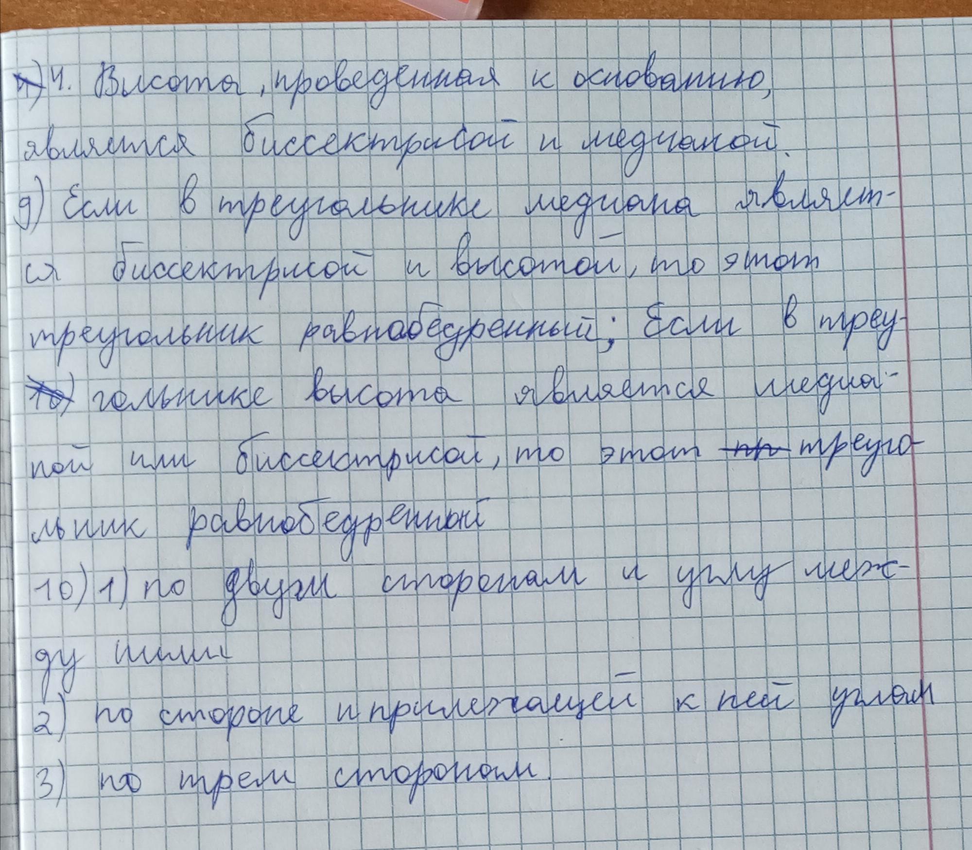9. По каким признакам можно установить, что треугольник равнобедренный