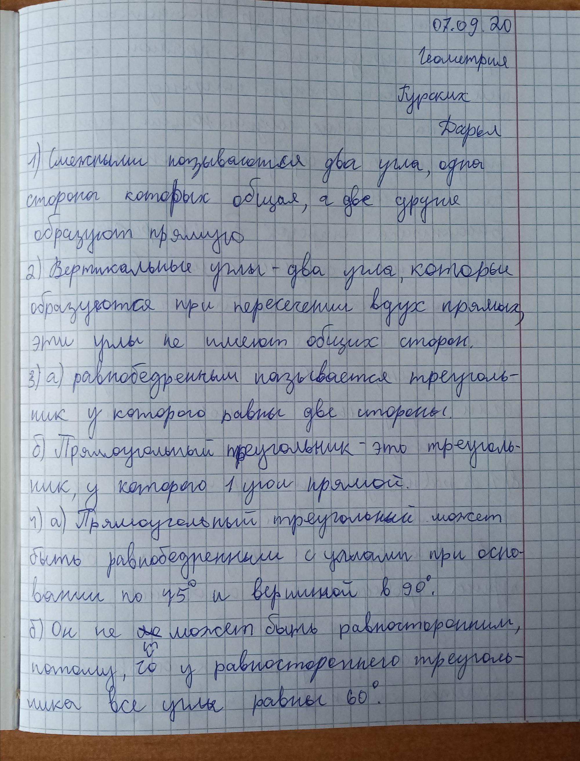 3. Какой треугольник называется: а) равнобедренным; б) прямоуголь-