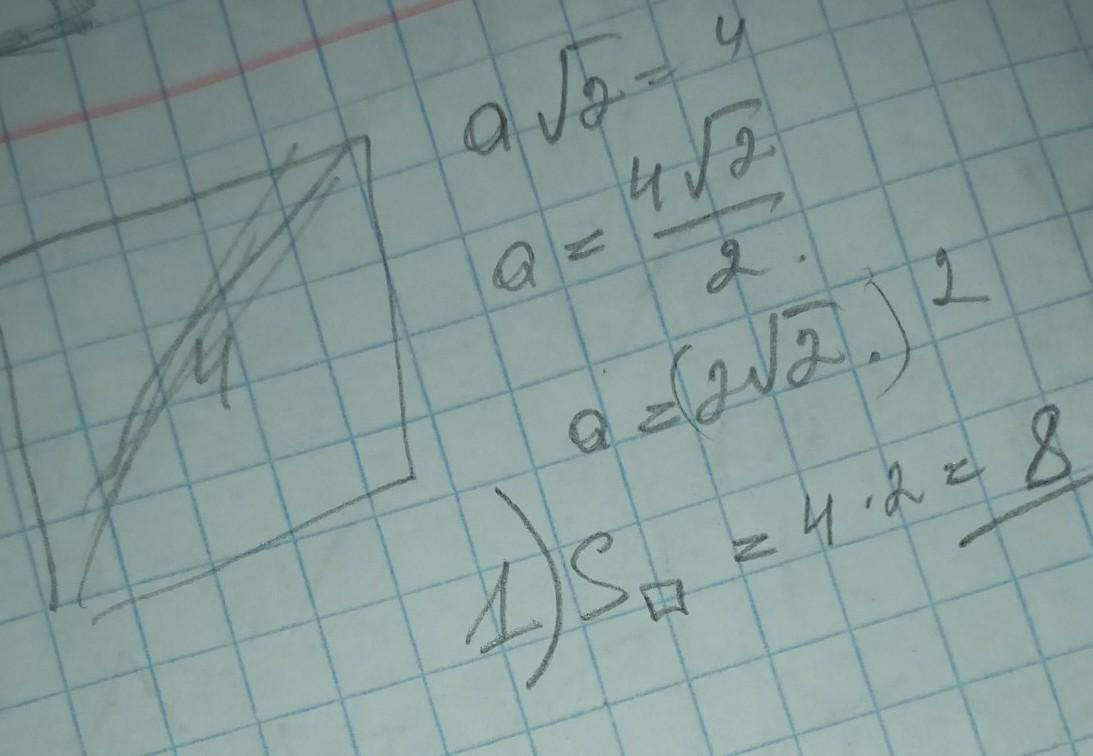 1. Найдите площадь квадрата если его диагональ равна 4.