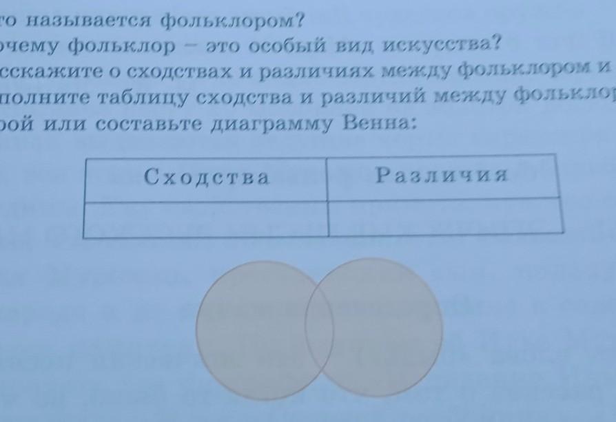 Заполните таблицу сходства и различий между фольклором и литера-