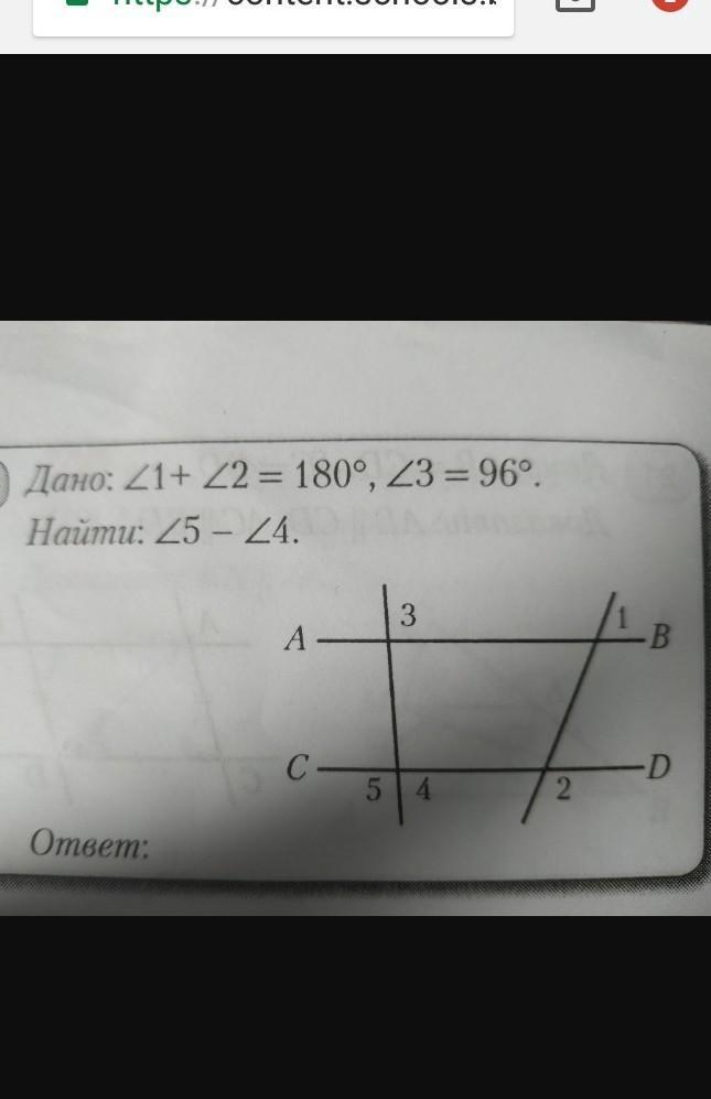 ∠5=∠3=96* (как накрест лежащие при параллельных прямых АВ и СD и секущей).