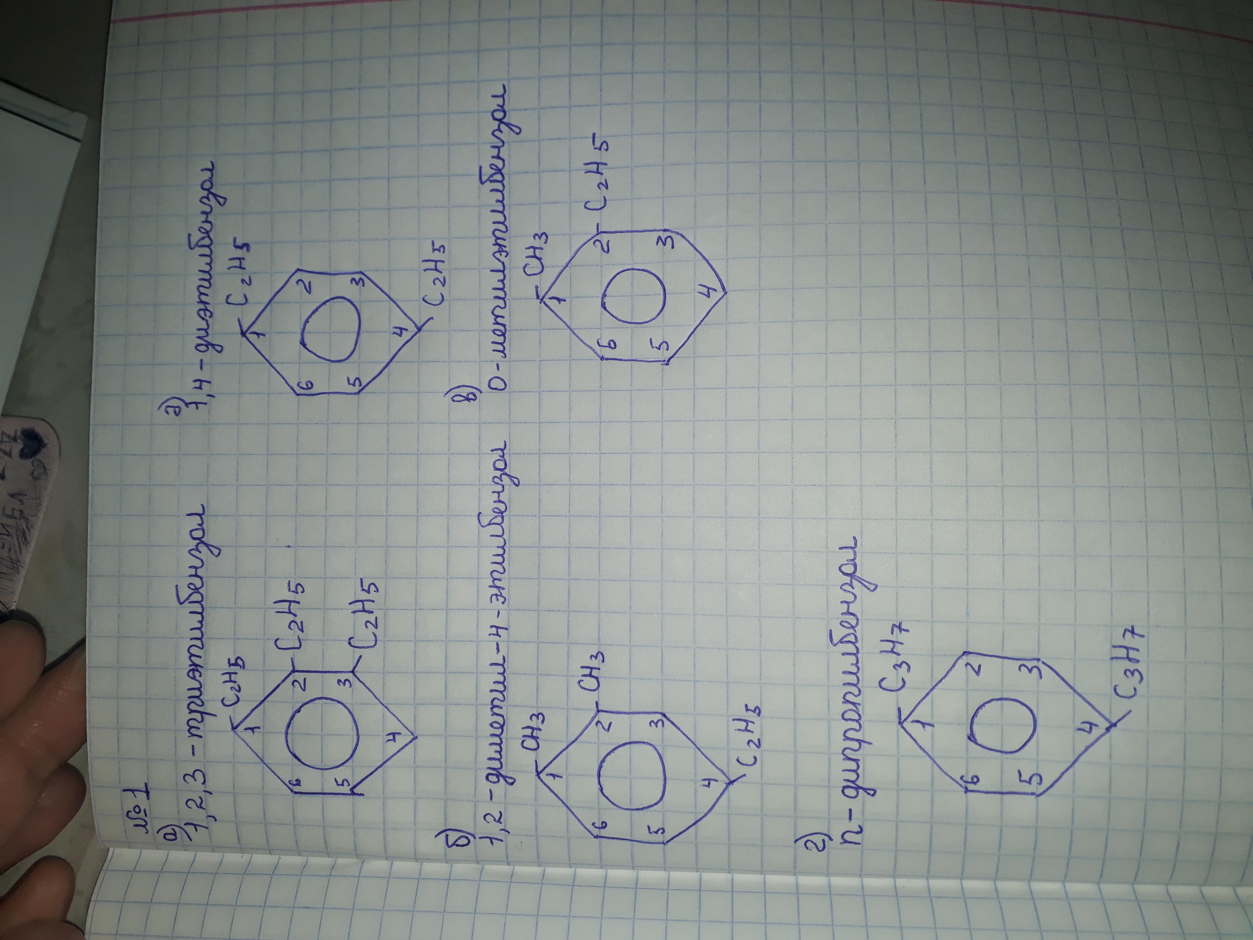 а)1,2,3-триэтилбензол; б) 1,4-диэтилбензол; в) 1,2-диметил-4-этилбензол