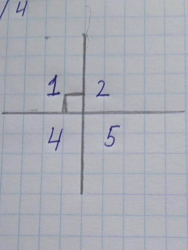 На рисунке ∠1 = ∠2 = ∠5 = ∠4 = 90°
