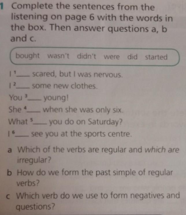 irregular verbs: to be ( wasn't/were), do ( did/didn't), buy (bought)