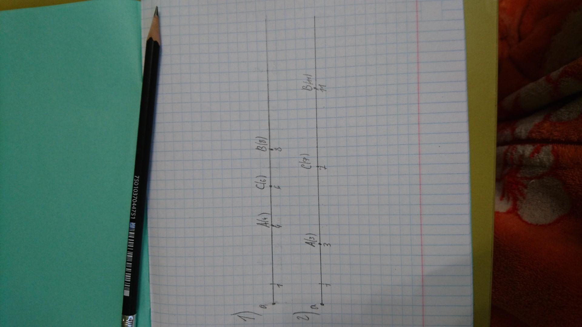 точки: 1) А(4) и В(8); 2) А(3) и В(11). Отметьте точку С,
