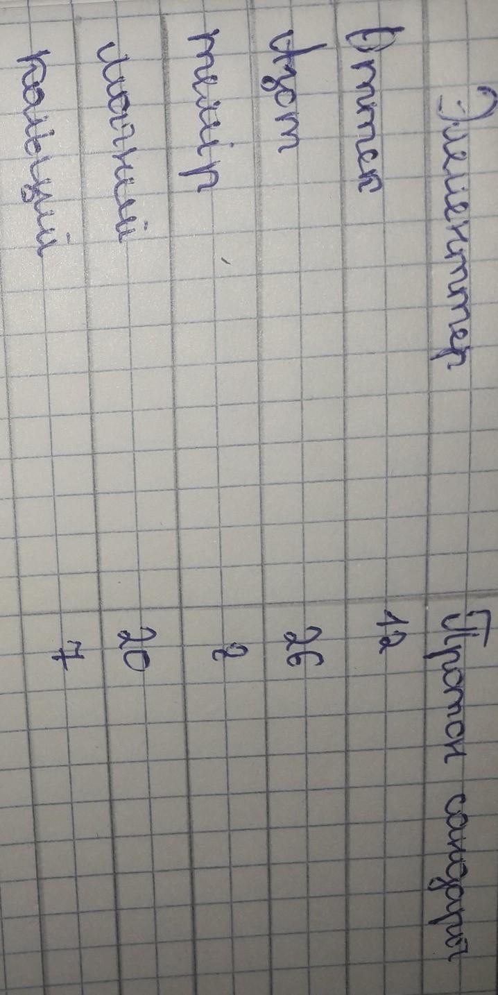 оттек 8 азот 7 Темир 26 магний 12 кальций 20