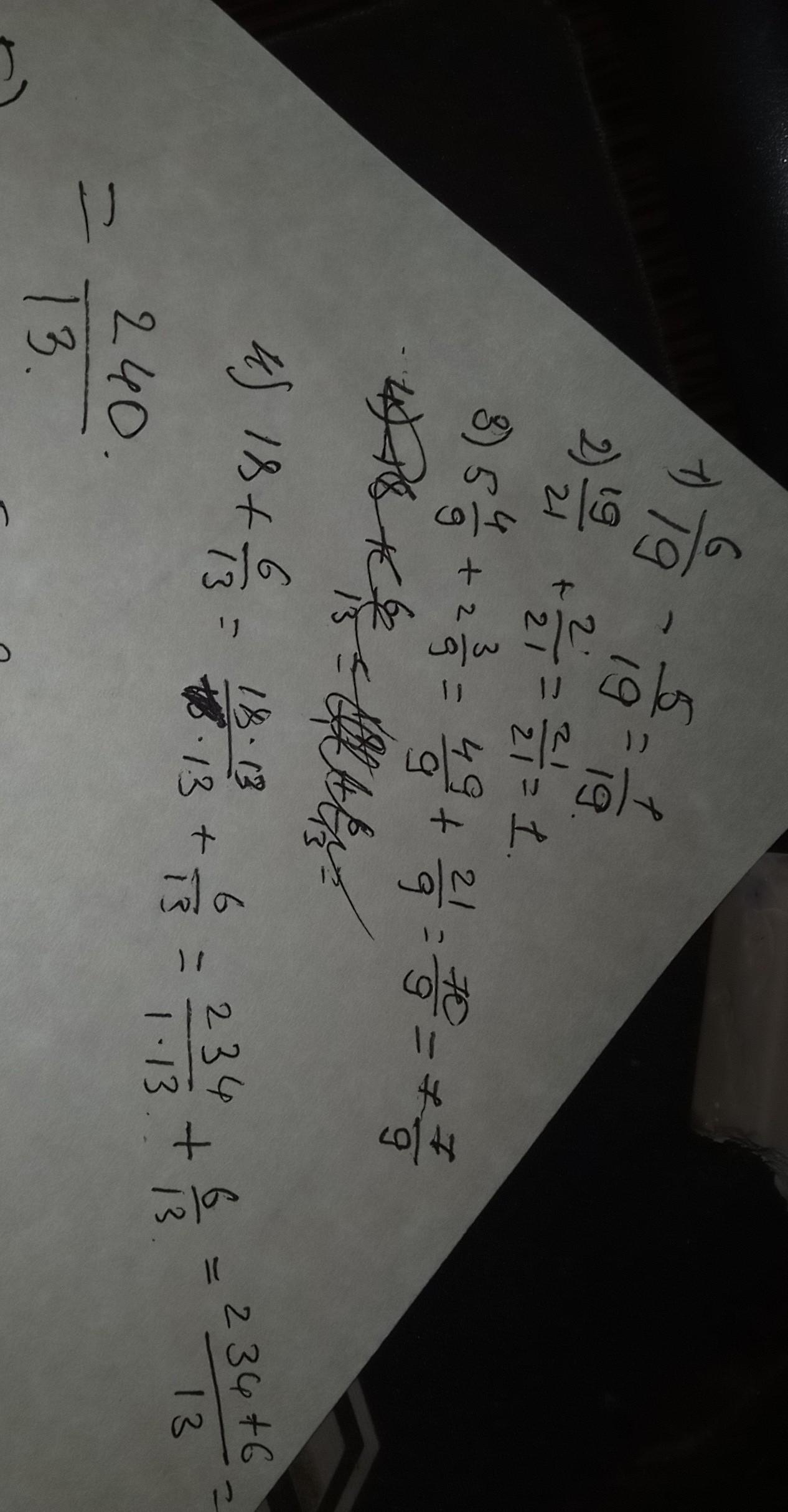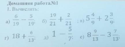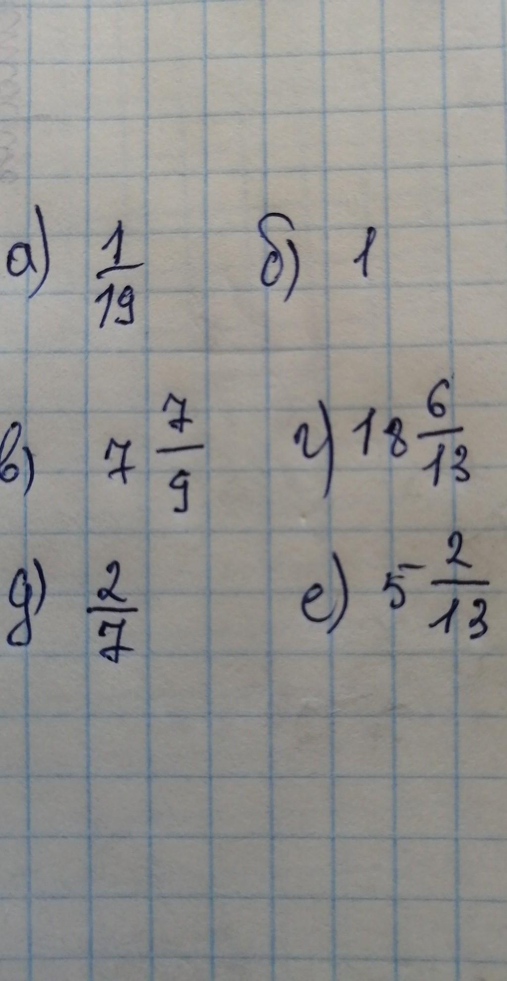 а) 1/19, б) 1, в) 7 7/9, г) 18 6/13, д)2\7, е) 5 2/13