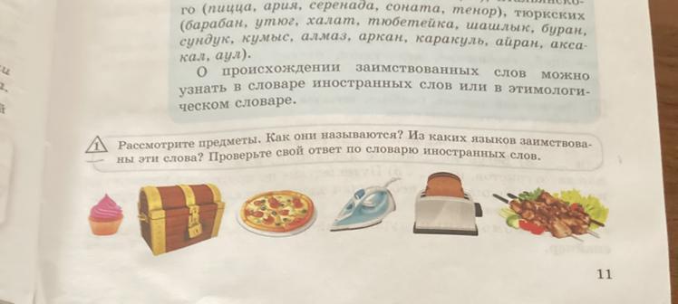 Рассмотрите предметы. Как они называются? Из каких языков заимствова-