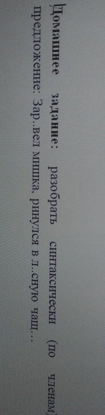 Заревел(сказуемое-глагол =) мишка(подлежащее-сущ), ринулся(сказуемое-глагол =) в(предлог) лесную(определение-прилаг ~~) чащу(обстоятельство-сущ _ . _ ).