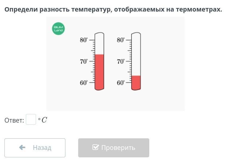 на первом термометре 73.5° а на втором 62.5, получаем разницу 11°