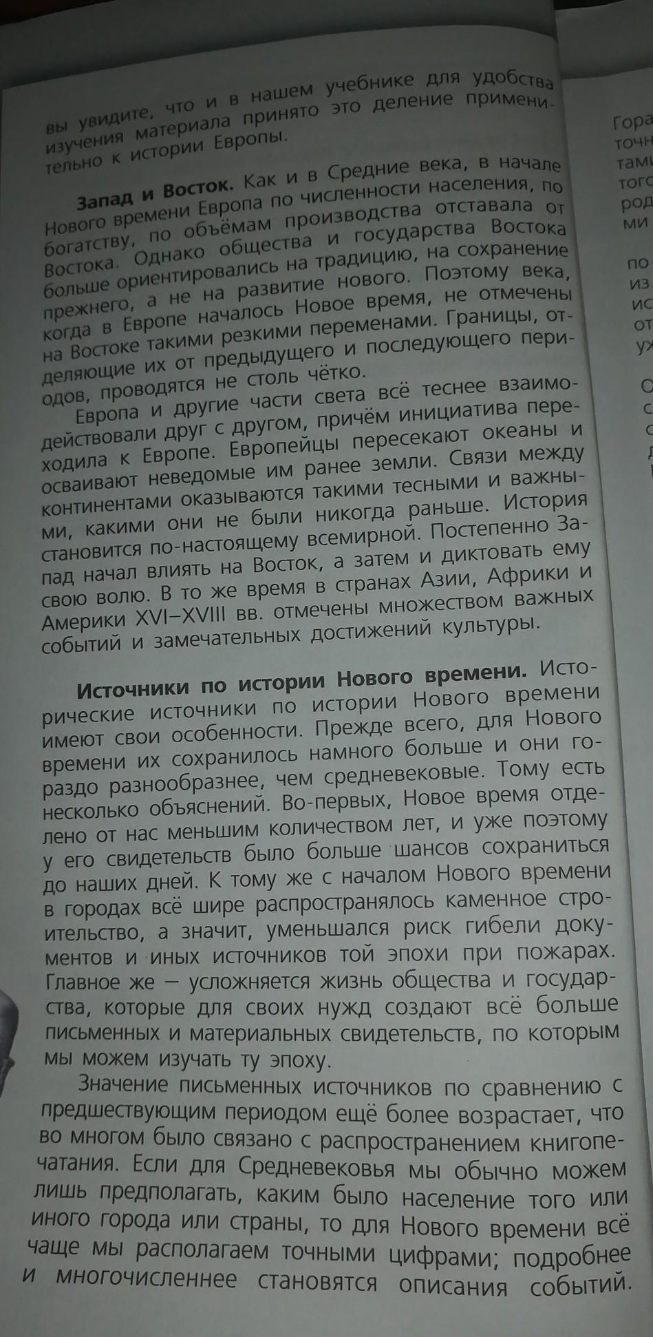 Запад и Восток. как и в средние века, в начале нового времени Европа по численности населения,по богатству, по объемам производства отставала от Востока. но общество Востока больше ориентировалась на традицию и на сохранение прежнего, а не развитие ногово. Поэтому когда в Европе началось новое время они были не отмечены на Востоке такими переменами. Европа и другие части света все чаще тесно взаимодействовали друг с другом и инициатива переходила к Европе. Европейцы искали новые земли и в связи с этим континенты акказываются не такими важными какими были. Запад начал влиять на Восток, а затем диктовать свою волю. Источники по истории нового времени. Эти источники имеют свои особенности. Прежде всего для Нового времени. Новое время было разнообразней по некоторым факторам 1. новое время отделено от нас меньшим количеством лет. С началом нового времени распространилась каменное строительство, Значение письменных источников возрастает. Если для среднивековья мы можем предположить то для нового времени мы располагаем точными цифрами.