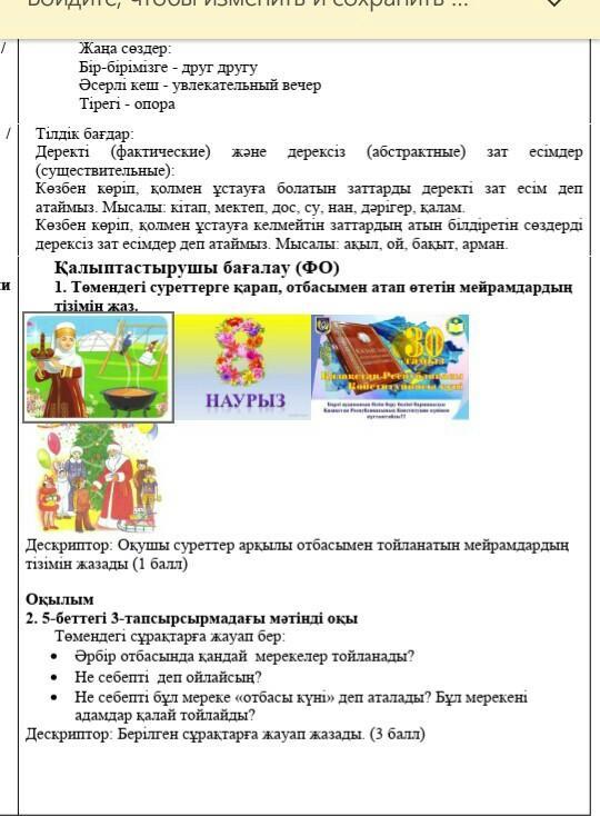 Дескриптор: пишет ответы на заданные вопросы. (3 балла))