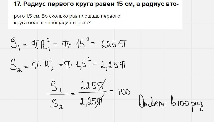 17. Радиус первого круга равен 15 см, а радиус вто-