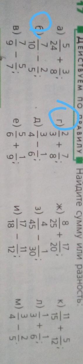 В г) 2/3+7/8 нужно знаменатель сравнять на 24