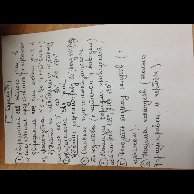 Теорема косинусов: квадрат стороны треугольника равен сумме квадратов двух других сторон минус удвоенное произведение этих сторон на косинус угла между ними a^2=b^2+c^2-2bccosA