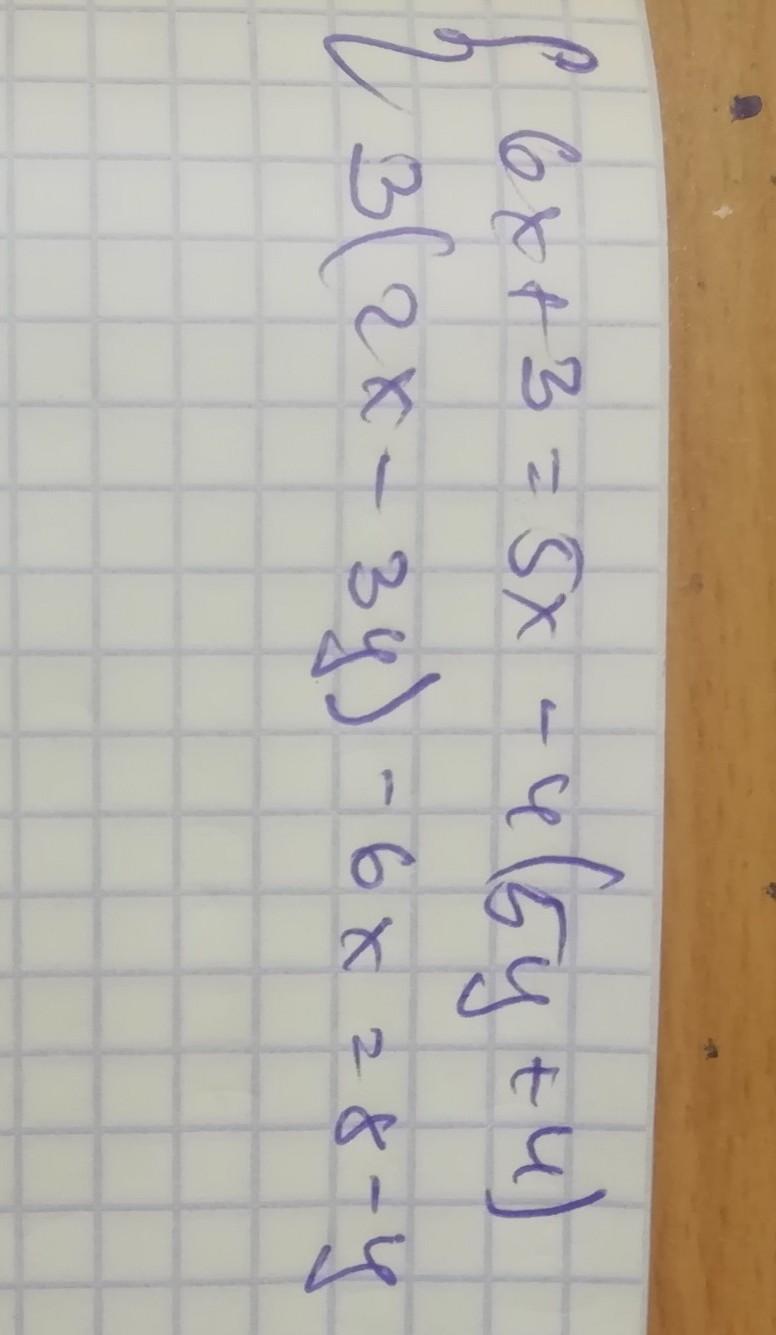 6х-9у-6х=8-у -9у+у=8 -8у=8 у=-1 знайдемо х 6х+3=5*(-1)-20*(-1)-16