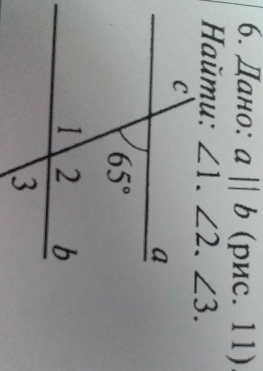 <1=65° внутренние накрест лежащие.<2=180-65=.....<1=<3 вертикальные.