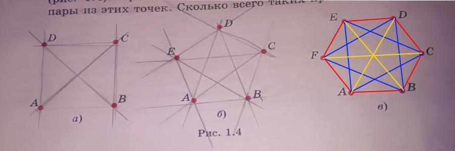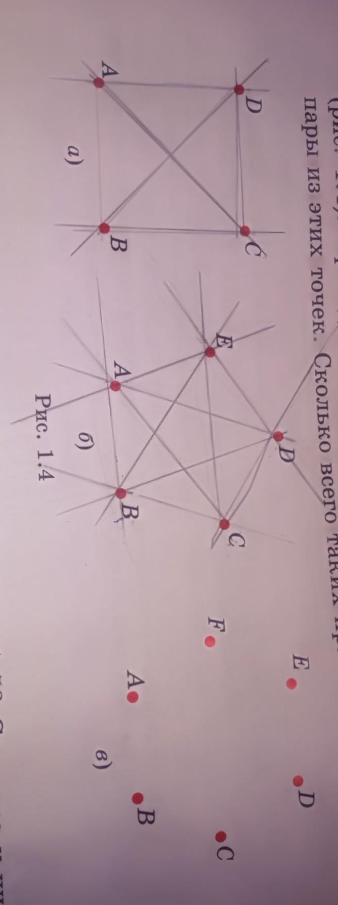 1.4. Изобразите: а) четыре точки; б) пять точек; в) шесть то-
