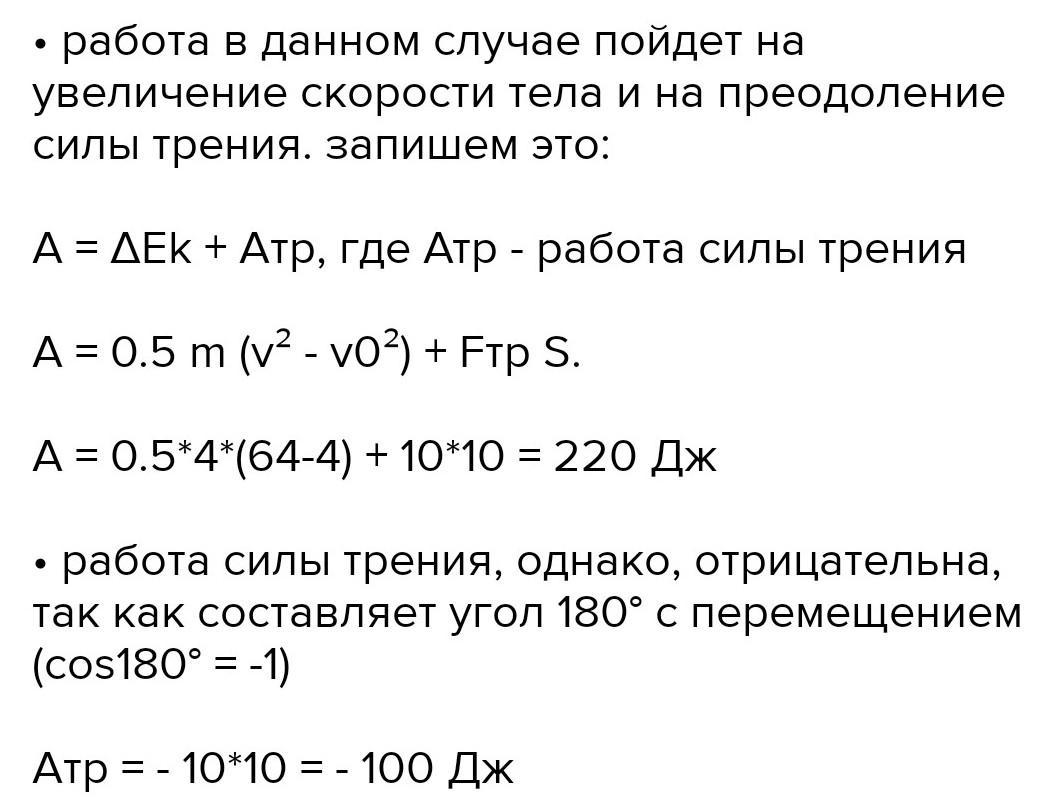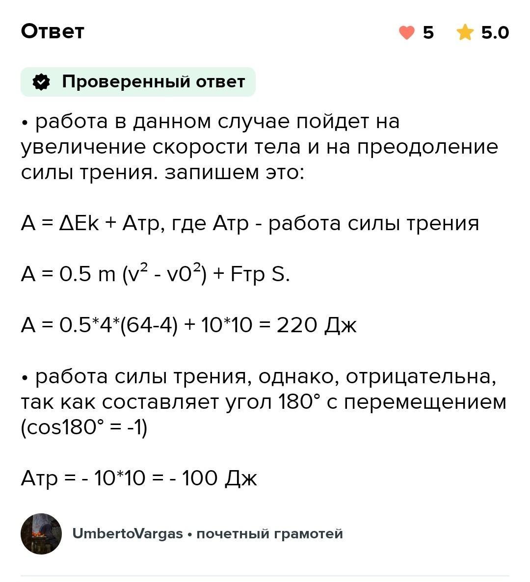 На пути s = 10 м, если на всём пути действует постоянная сила трения F = 10 H. Масса тела m = 4,0 кг. Определите работу силы трения.