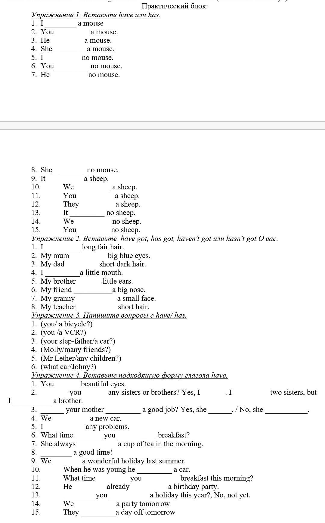 3. Has your mother got a good job? Yes, she has./No, she hasn't.