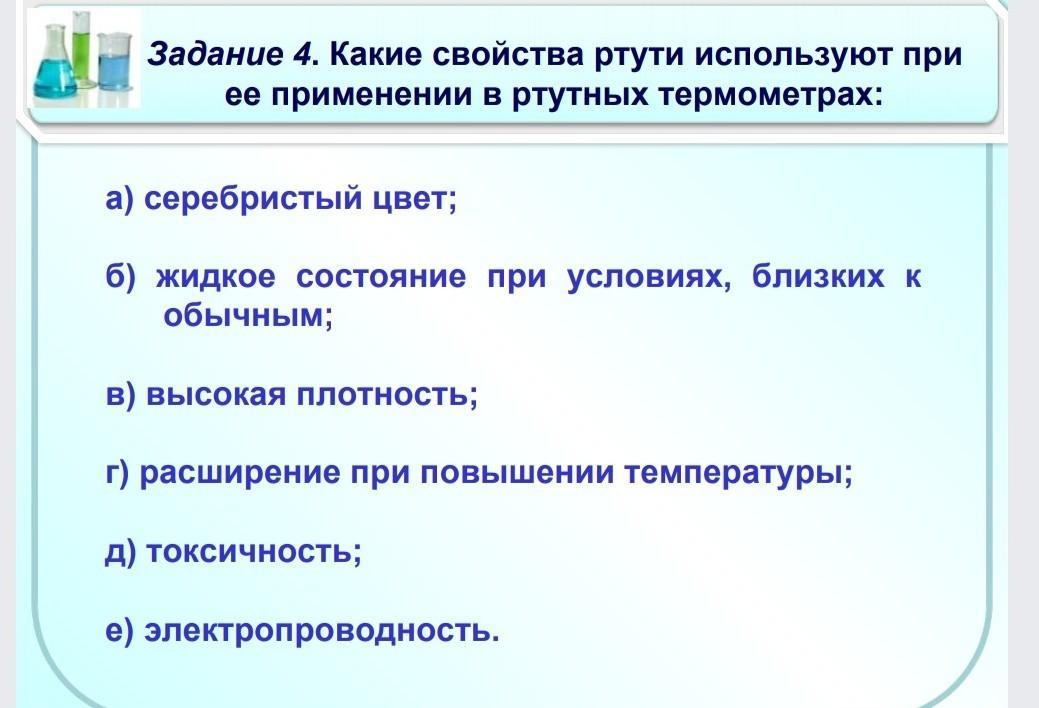 какие свойства ртути используют при ее применении в ртутных термометрах: