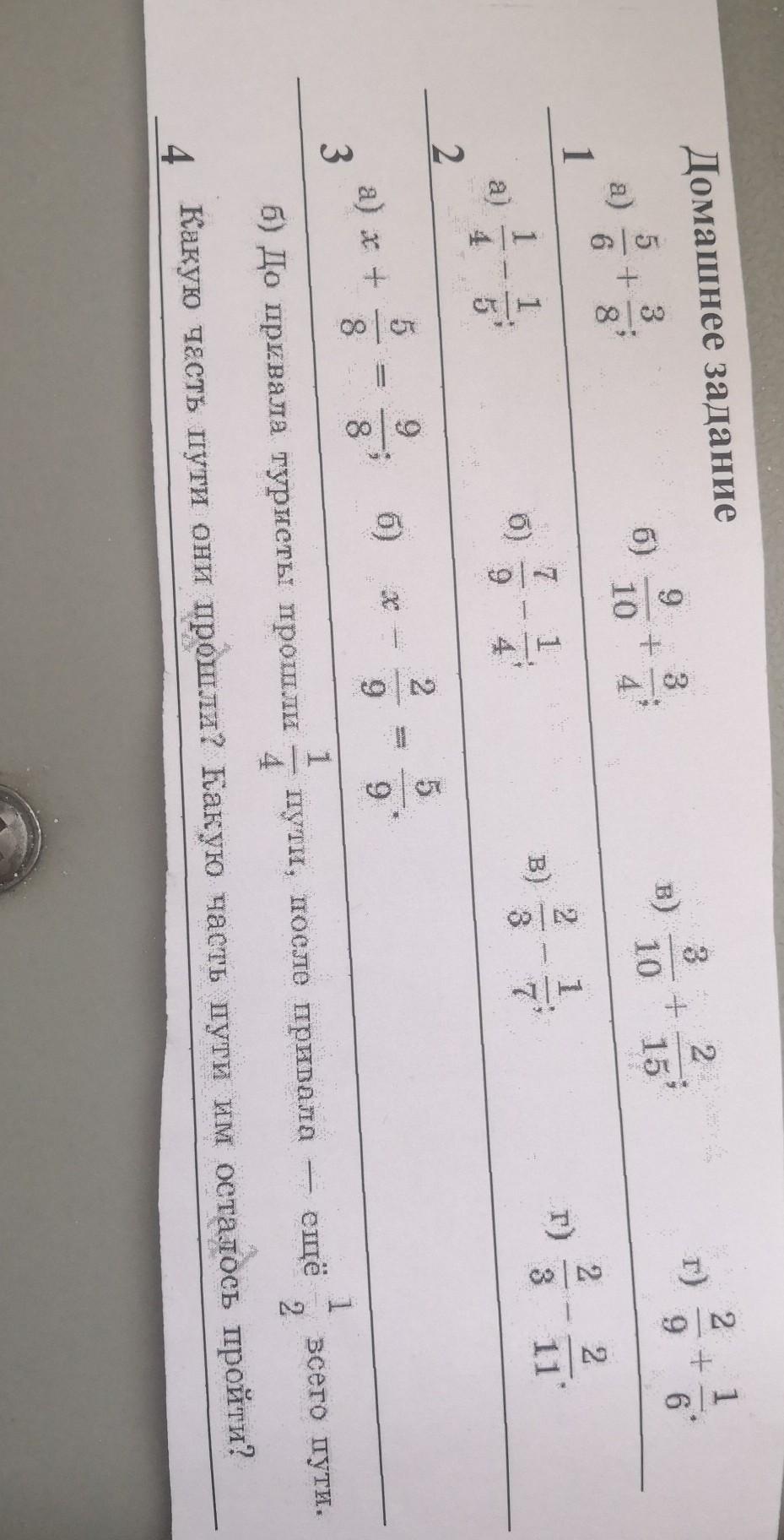 4) Они прошли 3/4 пути. Потому что 1/4+1/2 можно сложить. Когда будет общий знаменатель, получается 1/4+2/4 = 3/4.
