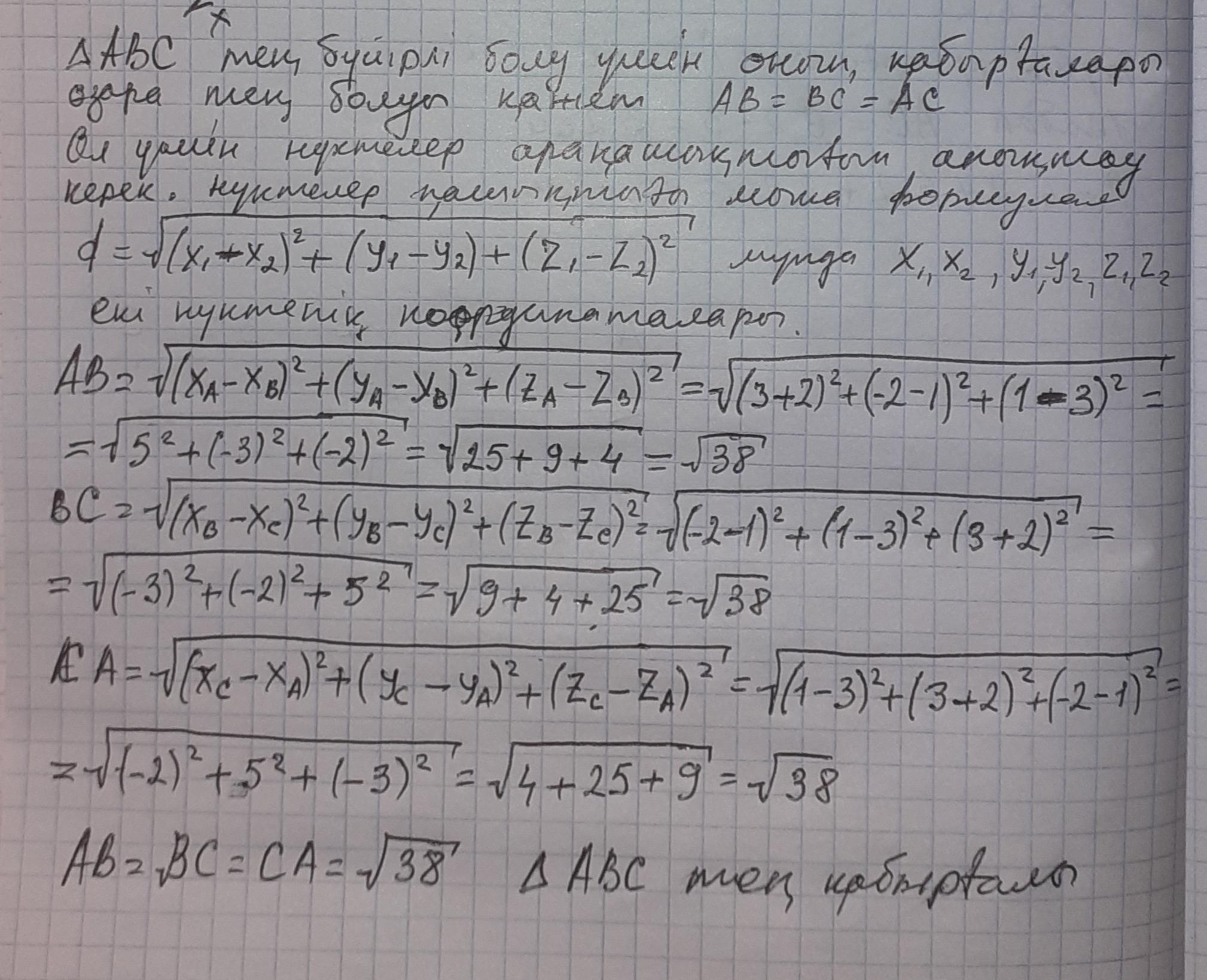 - Төбелері А(3; -2; 1), B(-2; 1; 3), C(1; 3; -2)