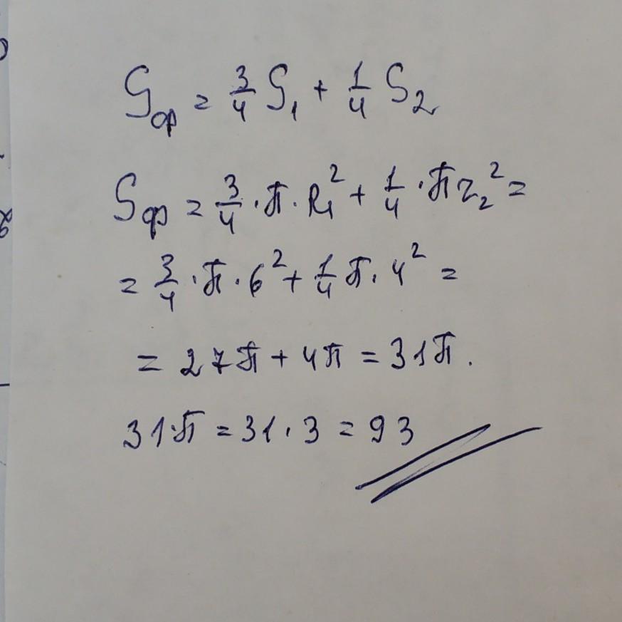 3/4 *36п +1/4 *16п =31п =93