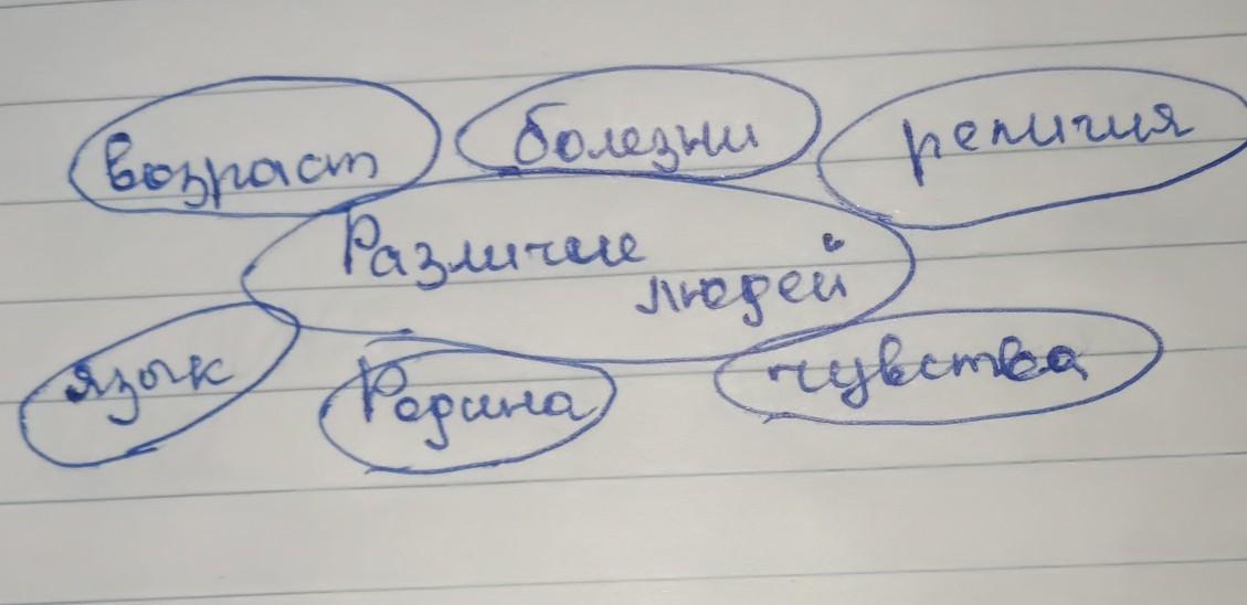 Люди отличаются друг от друга своим возрастом, своим местом рождения(Родиной), языком, на котором они говорят, своей религией, своими болезнями