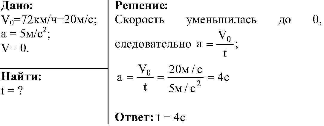 объясните задачу: Автомобиль, имея скорость, равную по модулю 72 км в час, начал тормозить перед светофором.Какой путь автомобиль прошел до полной остановки, если в ходе торможения он двигался с ускорением |а|= 5 м|с²