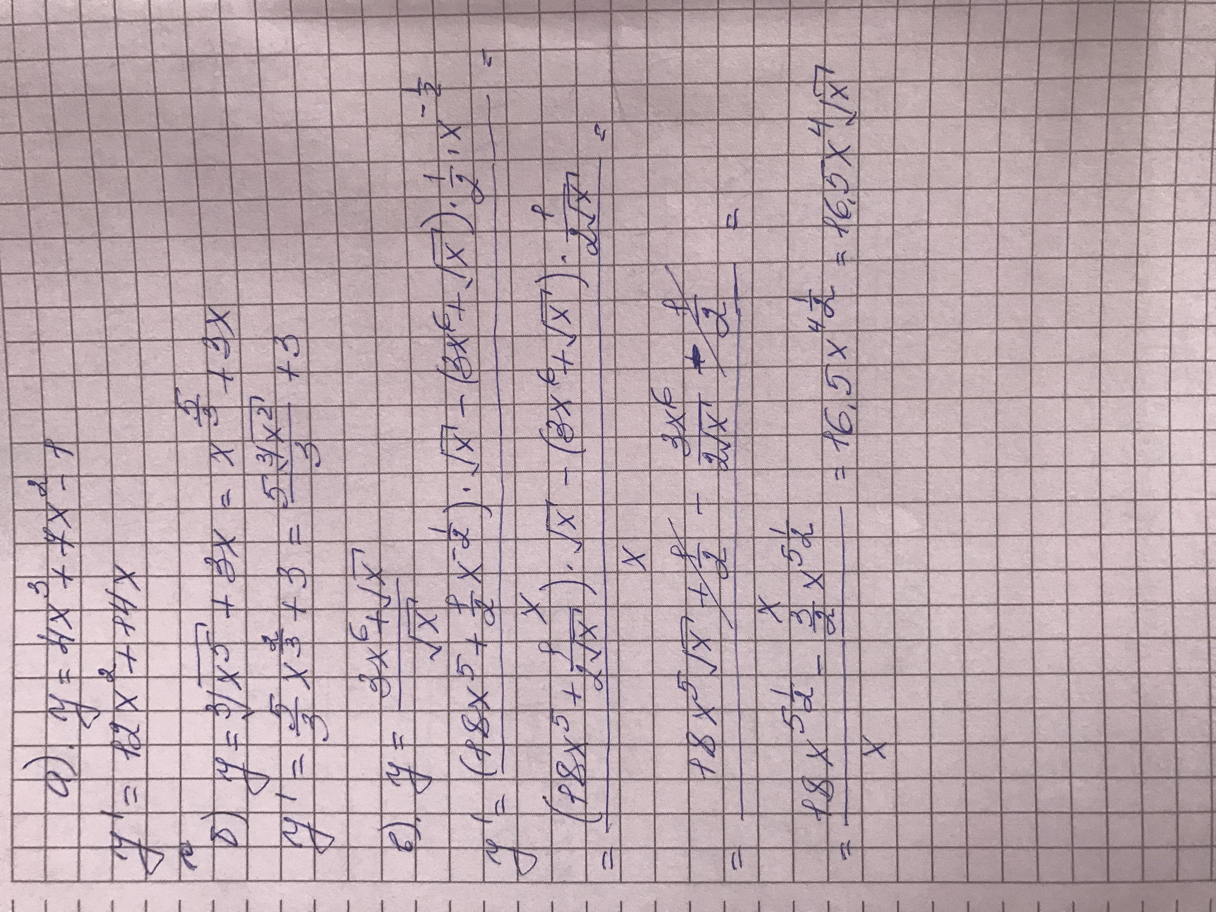 y'=((3x⁶+√x)/√x)'=(3x¹¹/²+1)'=(33/2)x⁹/²=(33/2)x⁴√x