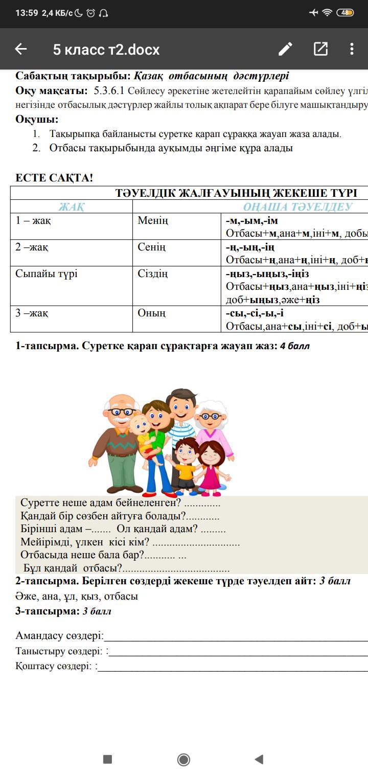 2) Бір сөзбен айтқанда бұл - отбасы.