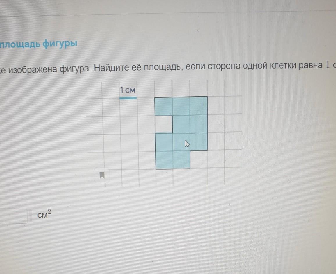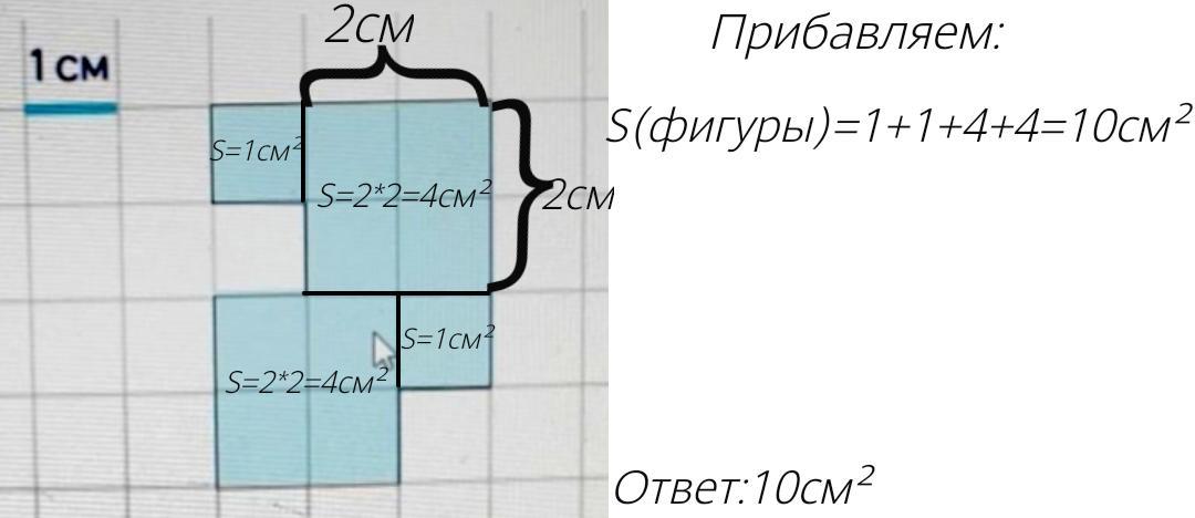 На рисунке изображена фигура. Найдите её площадь, если сторона одной клетки равна 1 СМ.