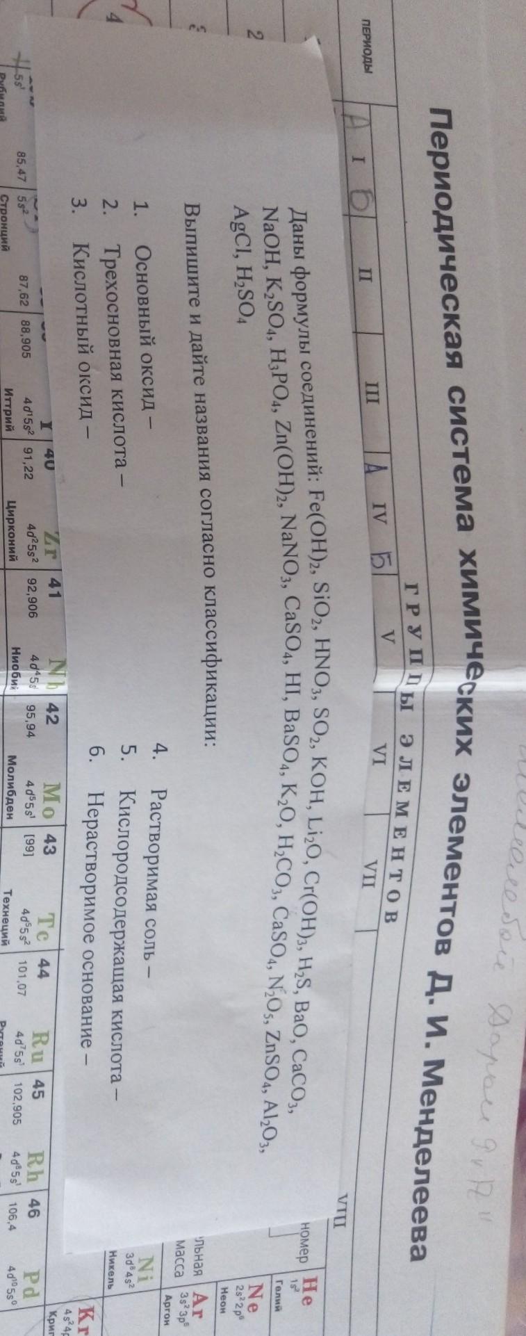 5)HNO3- азотная кислота, H2SO4- серная кислота, Н3РО4- ортофосфатная кислота , H2CO3- карбонатная кислота