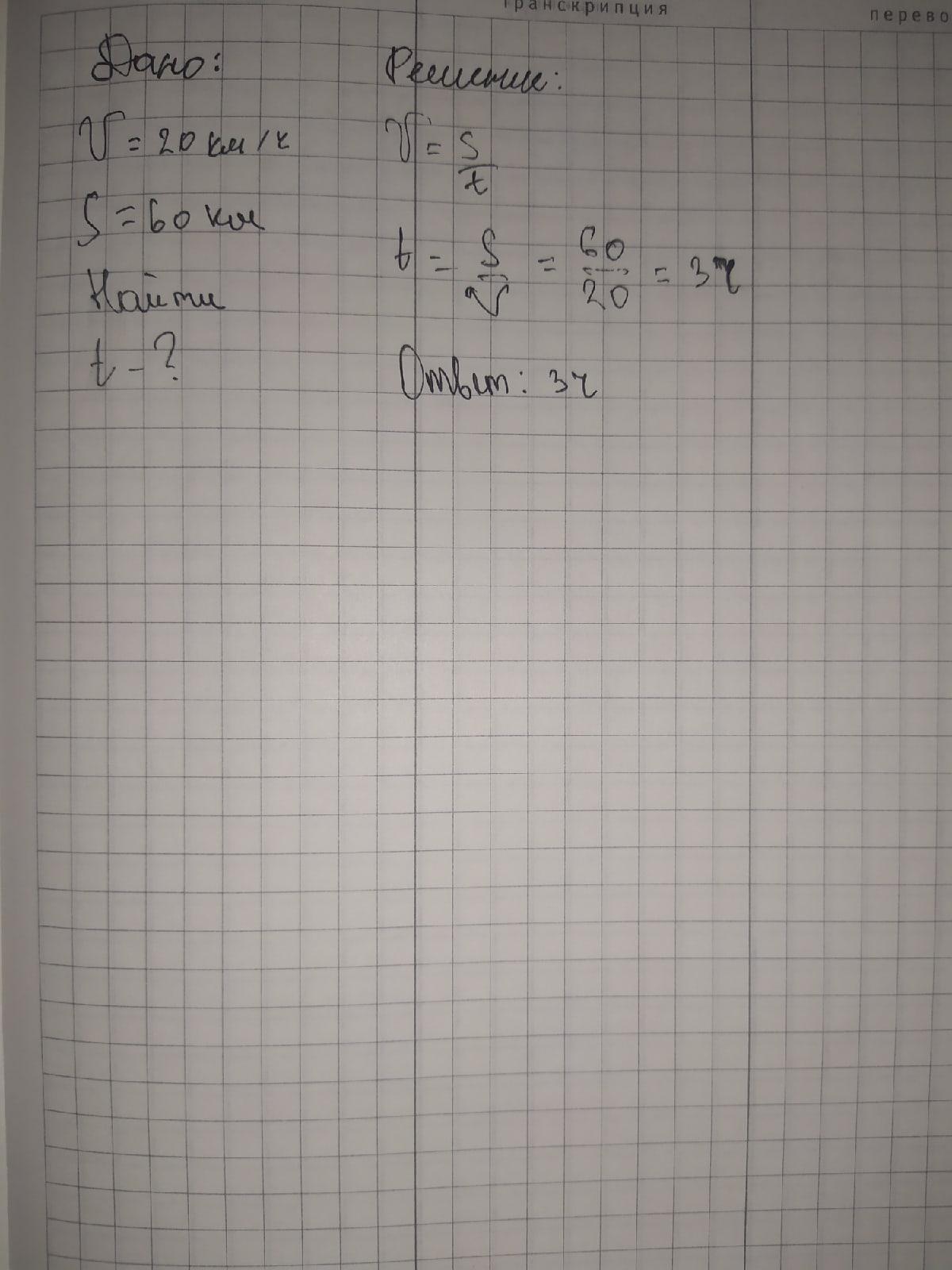Якщо швидкисть велосипедиста 20км/год, то за скильки годин вин пройде 60 км?