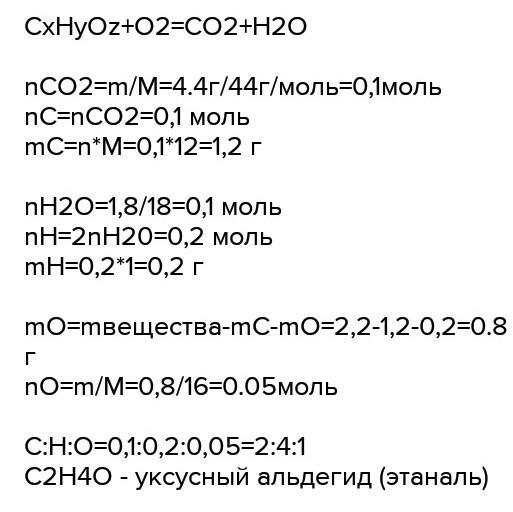 При сжигании 2,2г органического вещества образовалось 4,4г СО2 и 1,8г воды. Плотность по водороду равна 44. Найти молекулярную формулу, СхНу( где х и у неизвестные ) Пожалуйста помогите. Заранее спасибо большое