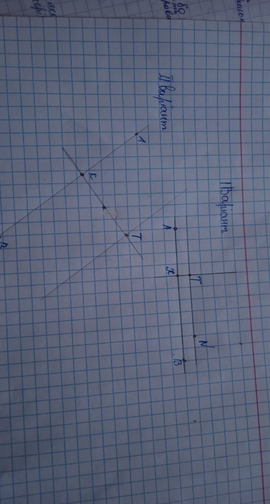 Взяти точку Т. Провести пряму AB, яка не проходить че-