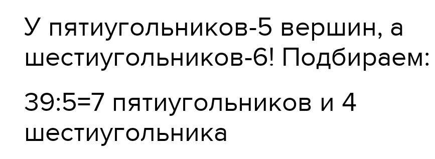 Никита вырезал из бумаги несколько пятиугольников и шестиугольников всего у вырезанных фигур было 34 вершины.Сколько пятиугольников вырезал Никита?