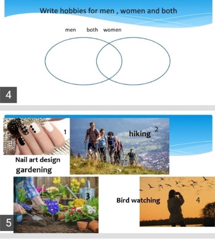 на фото есть картинки какое хобби относица мужчинам женщинам и для обоих