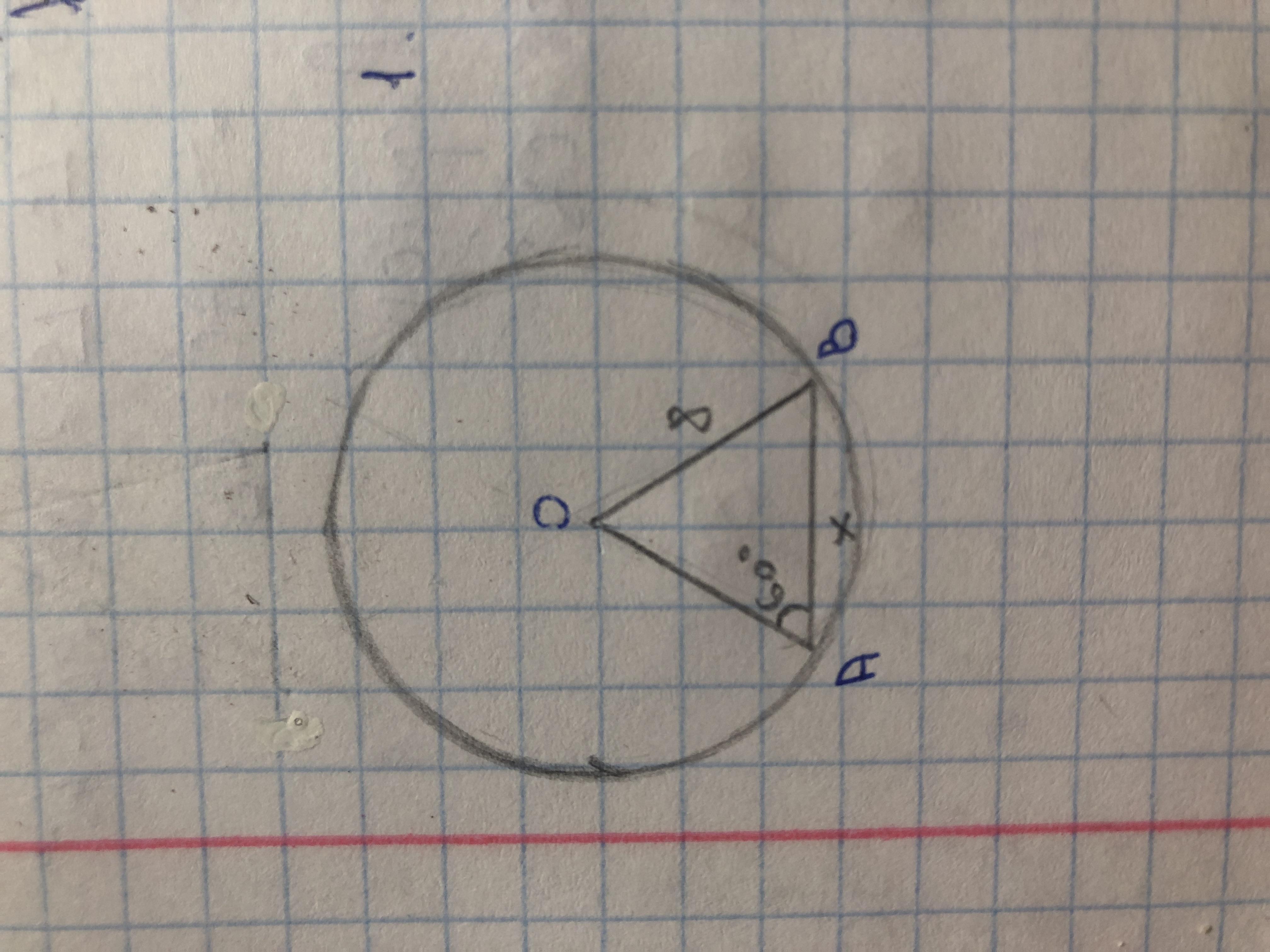 AO=OB=R => треугольник AOB равносторонний => AB=8.