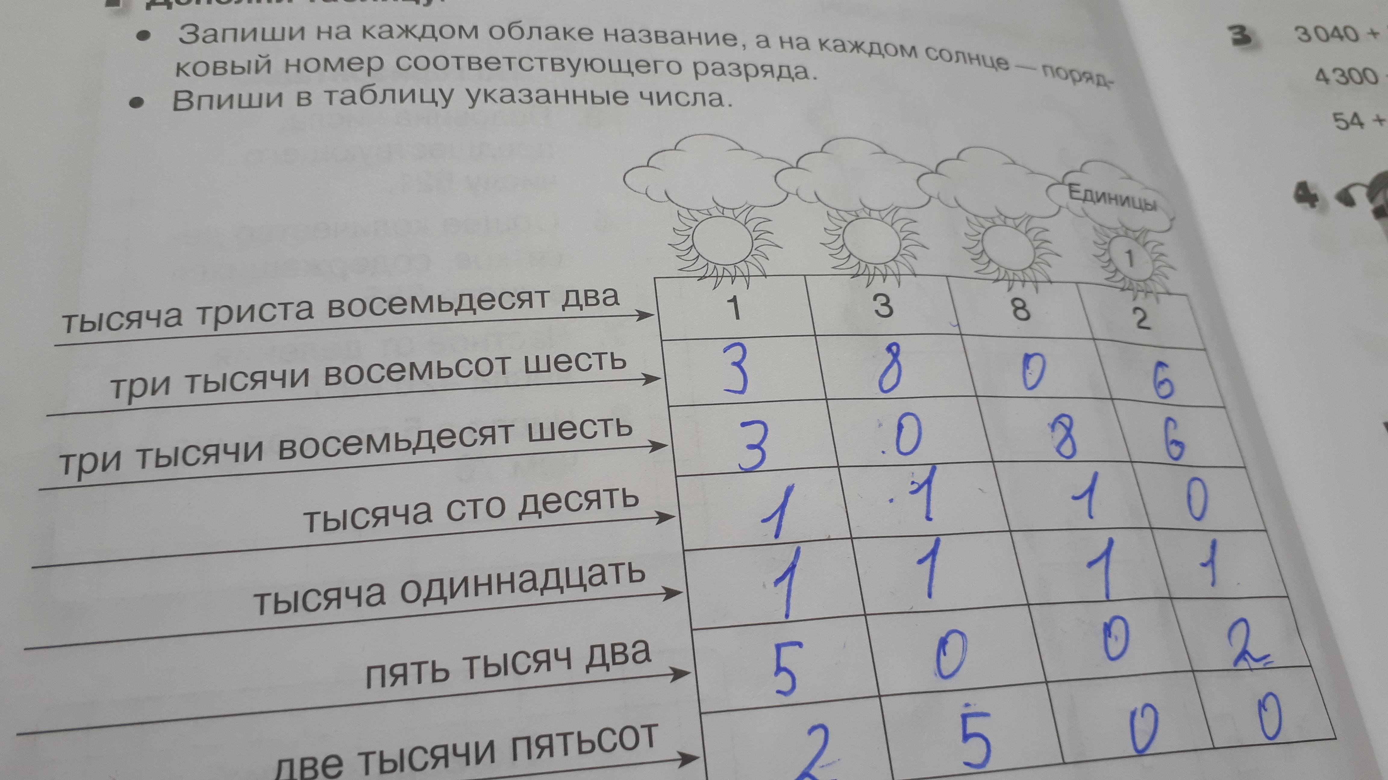 Порядок названий(на облаках) : тысячи, сотни, десятки, единицы.