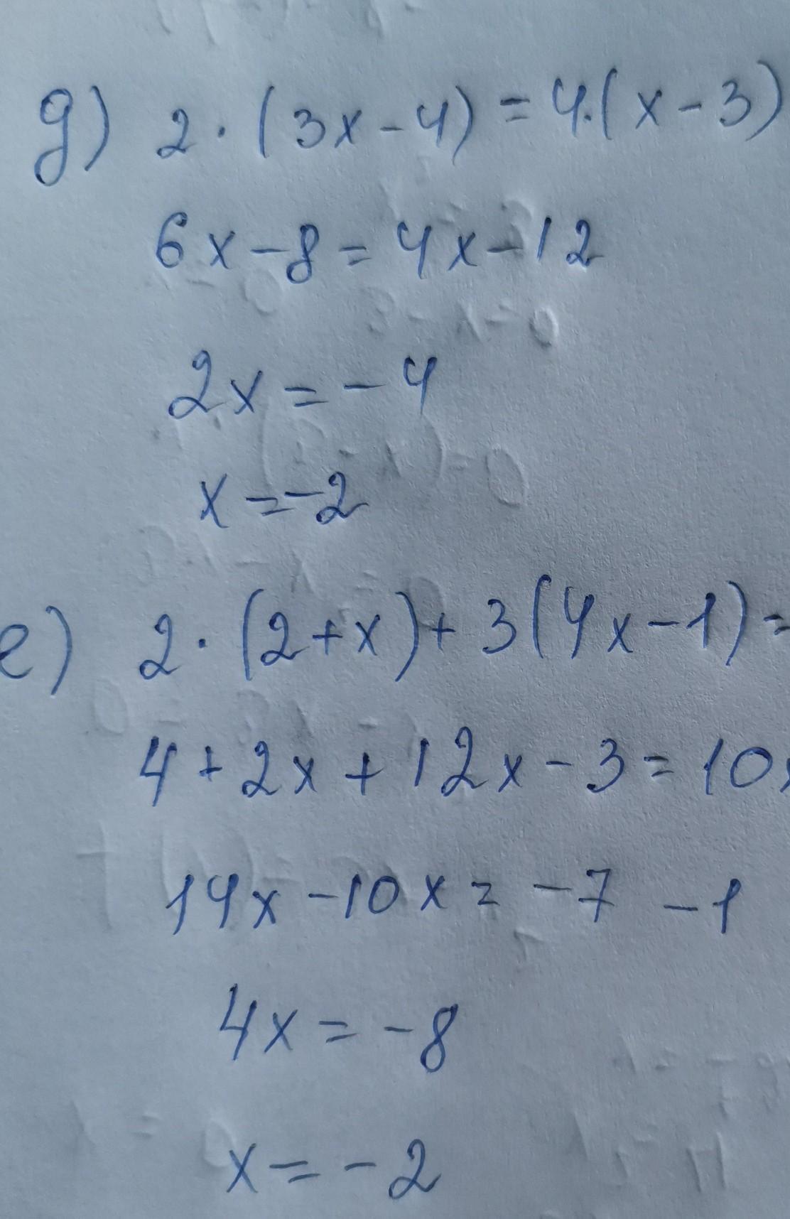 Д)2×(3x-4)=4(x-3)