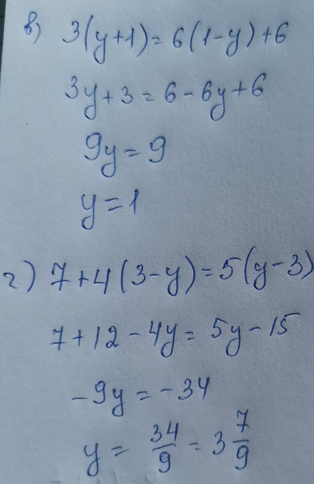 Г)7+4(3-y)=5(y-3)